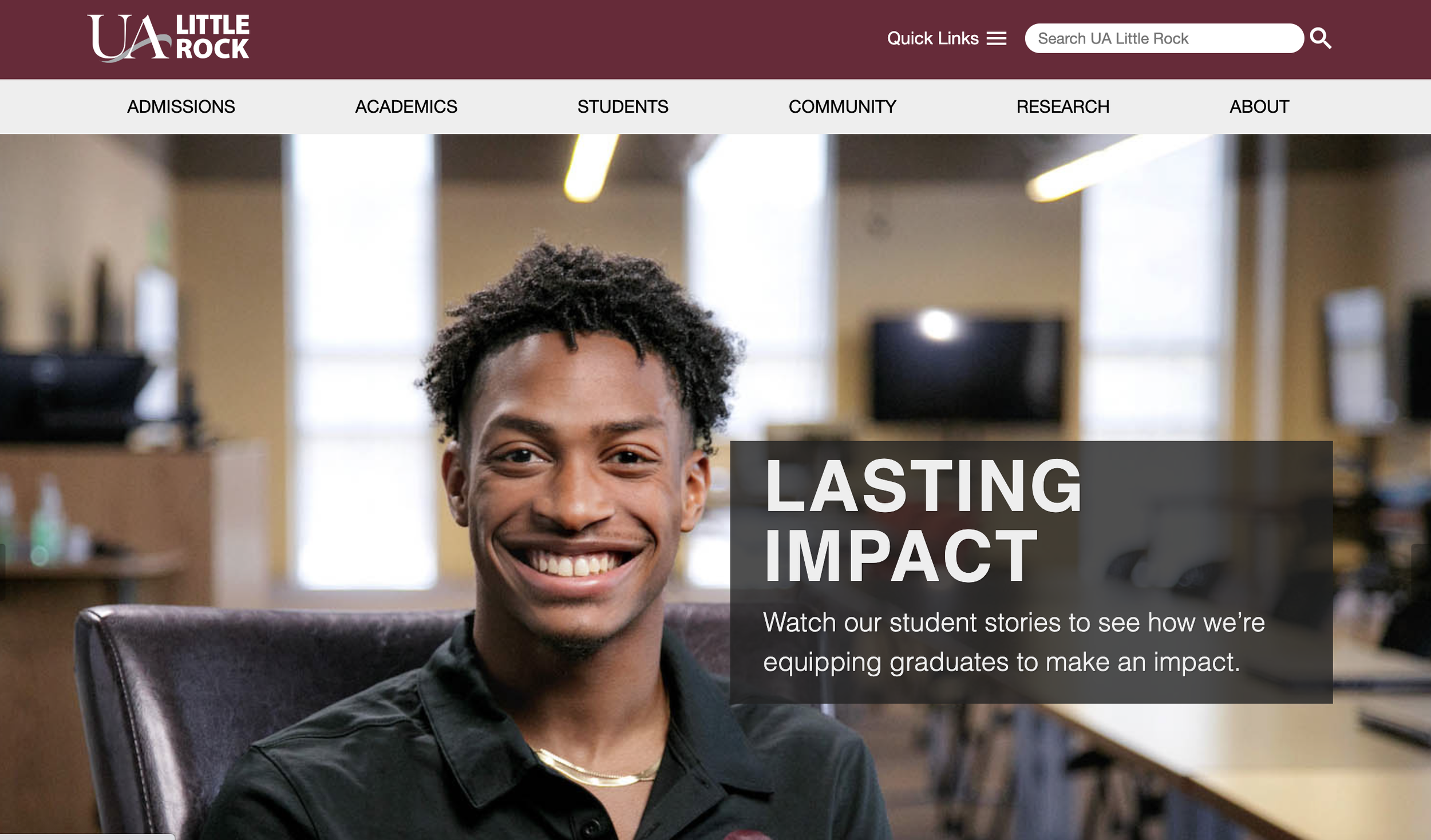 UALR.edu has stood the test of time. Designed in-house in 2014, this site has not undergone significant site changes since then, thanks to research-heavy future-proofing, WordPress adaptability, and training.