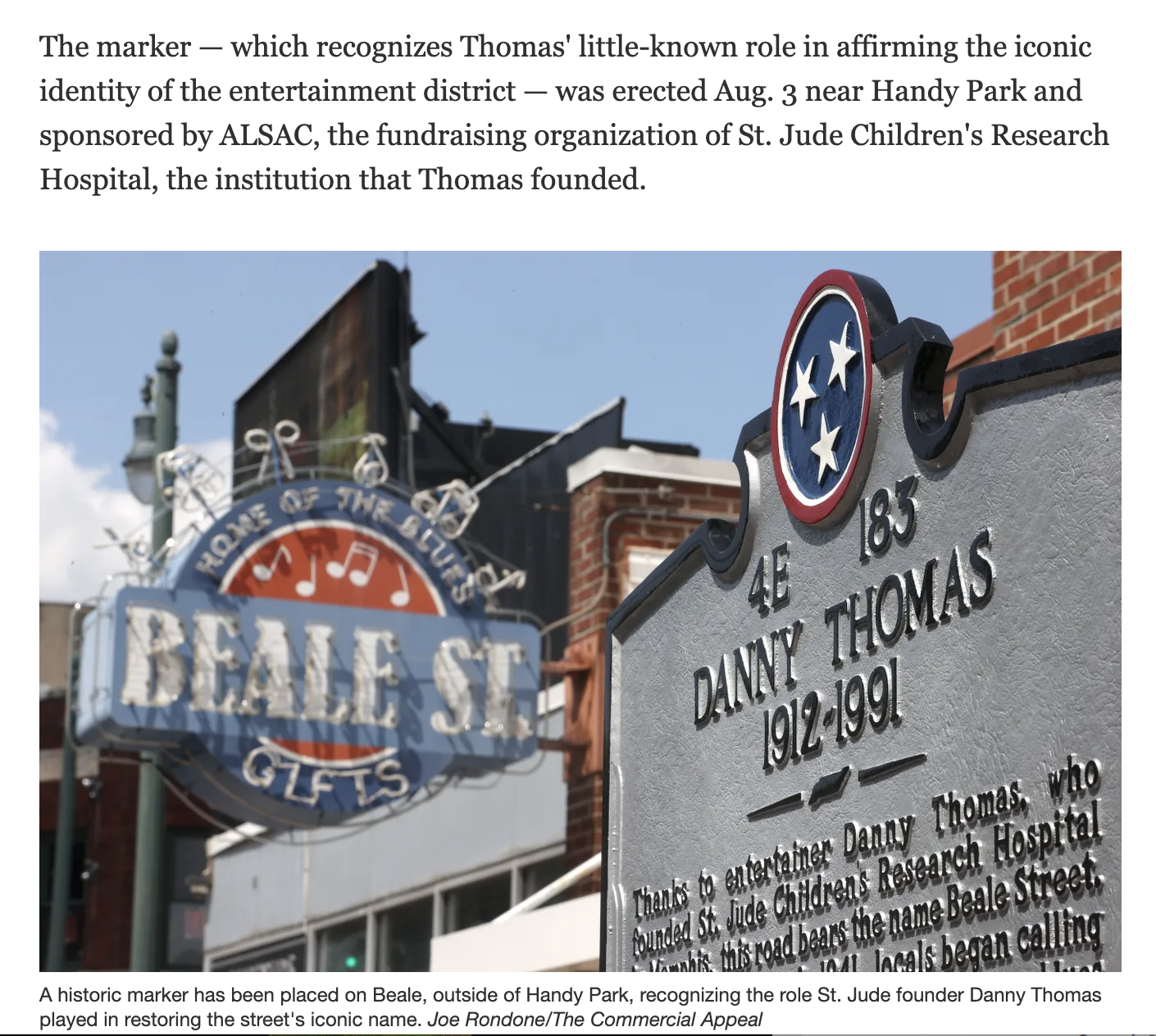 Marker credits St. Jude founder Danny Thomas' role in restoring Beale Street's iconic name